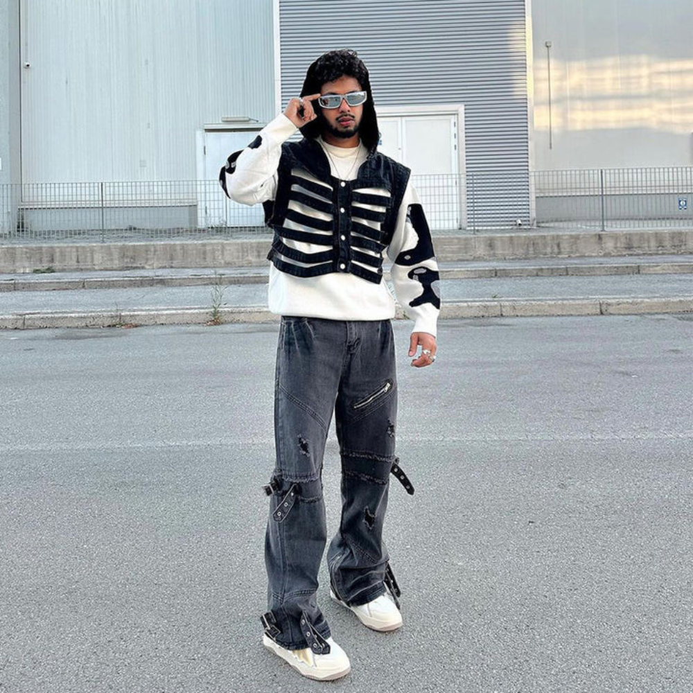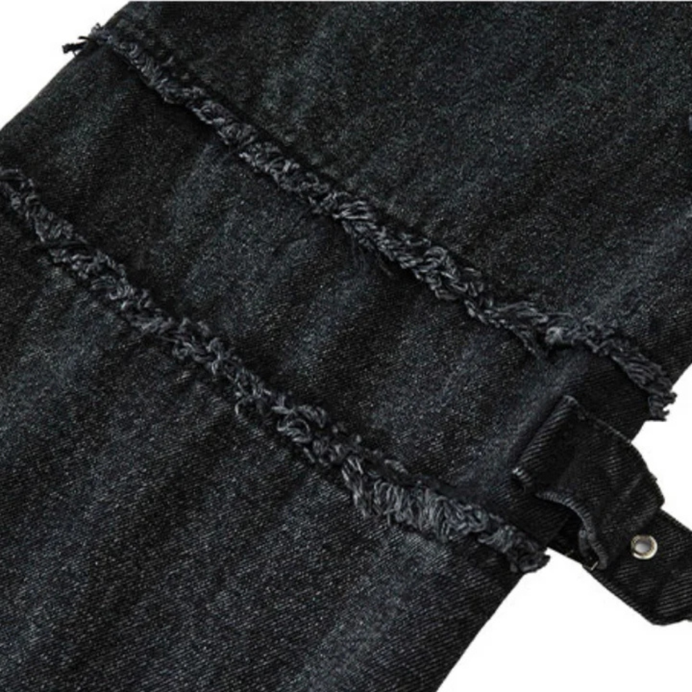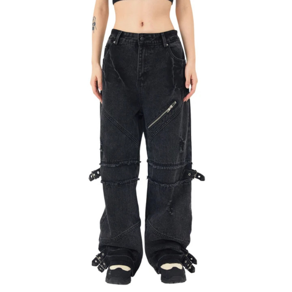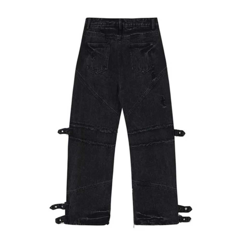 Made from high-quality materials, these jeans feature a unique paneled design that adds a touch of edginess to your outfit. The baggy fit provides a comfortable and relaxed look, while the cargo pockets add a utilitarian element to the overall design.