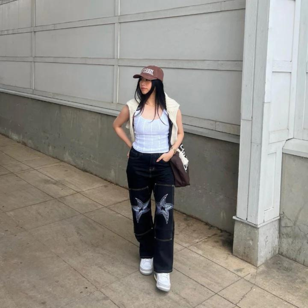 Elevate your denim game with our latest addition - the Urban Star Embroidery Straight Leg Jeans. Crafted from high-quality denim, these jeans feature a flattering straight leg fit that hugs your curves in all the right places. The intricate embroidery detailing on the back pockets adds a touch of urban chic to these classic jeans.
