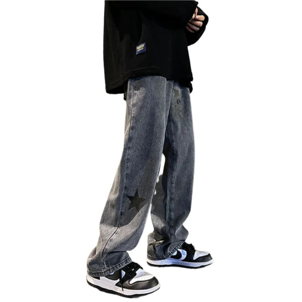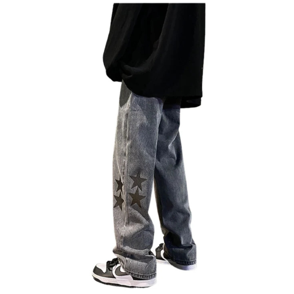 Elevate your street style with our latest addition to the Hip Kiwi collection - the Urban Star Graphic Straight Leg Jeans. Crafted with the modern urbanite in mind, these jeans feature a sleek straight leg fit and eye-catching graphic designs that will make you stand out from the crowd.