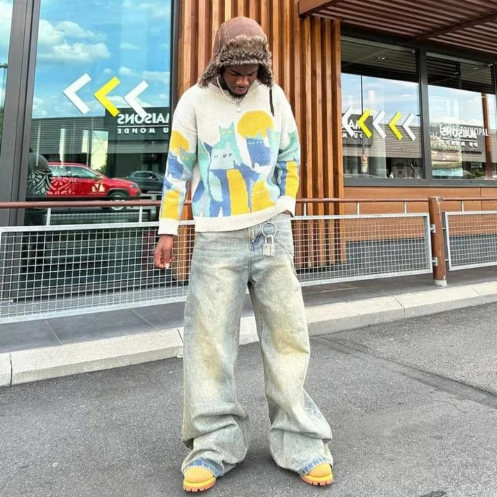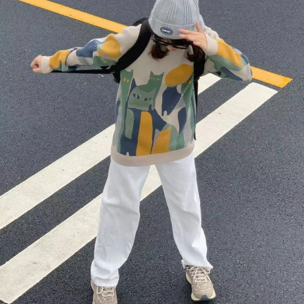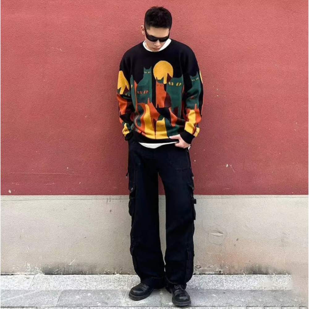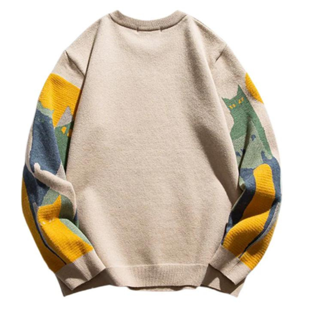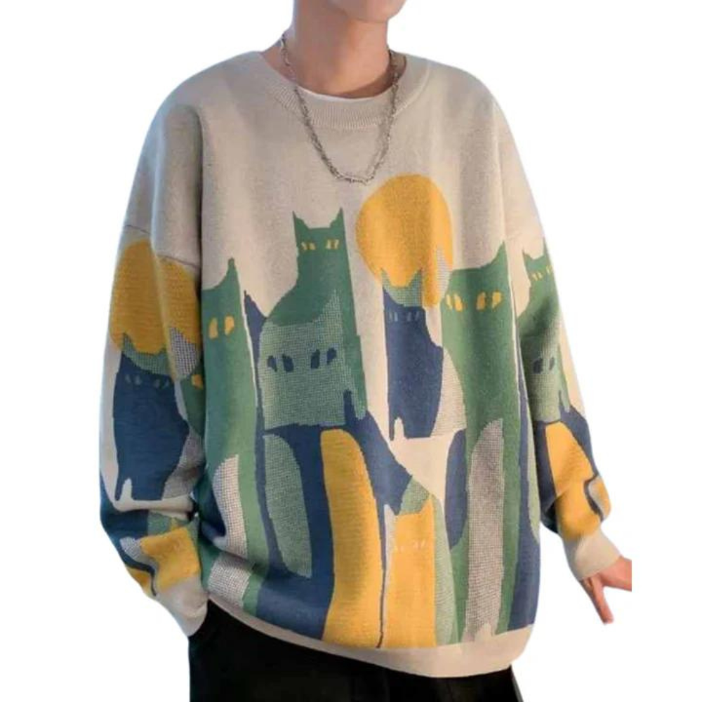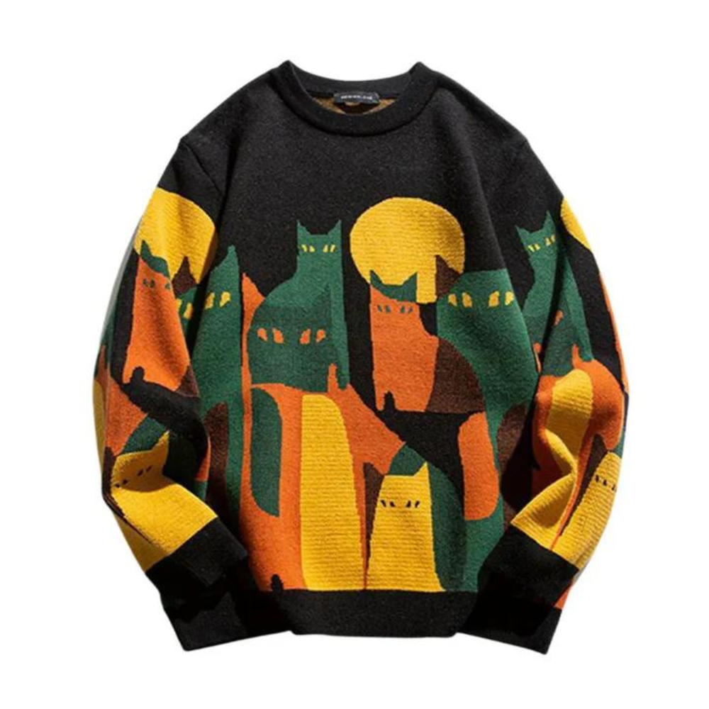 This Vintage Cat Knitted Sweater is the perfect addition to any cat lover's wardrobe. Made from high-quality wool and acrylic blend, this sweater is soft and comfortable to wear. The knitted design features these cute vintage cat patterns, complete with colorful eyes and body, that will make you stand out from the crowd.