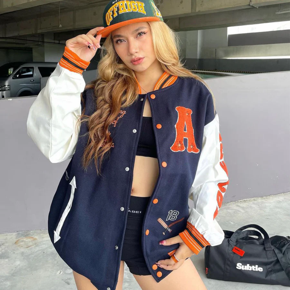 Step into the past with our Vintage Sunset Flock Jacquard Varsity Jacket. This stunning piece combines the classic varsity style with a touch of vintage charm. The sunset flock jacquard design adds a unique and eye-catching element to this jacket, making it a must-have for any fashion-forward individual.