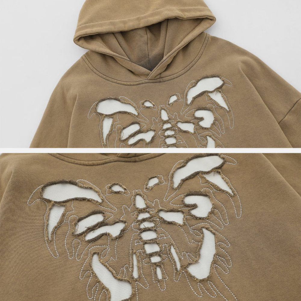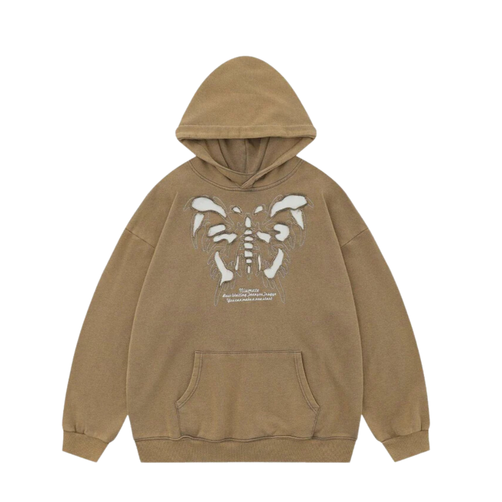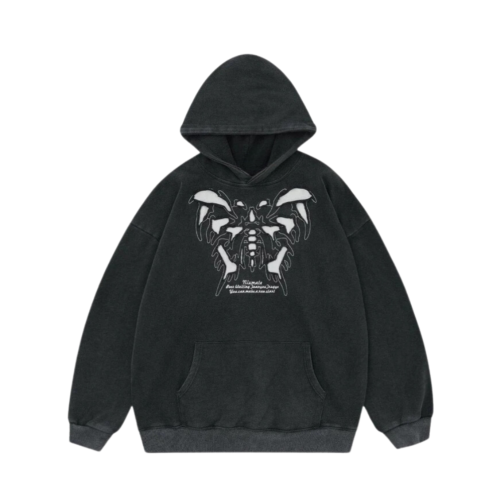 Elevate your street style with our unique and eye-catching "Washed Skeleton Butterfly" Hoodie. Made from high-quality materials, this hoodie features a washed black color with a bold and intricate skeleton butterfly design on the front. The washed effect adds a touch of edginess to the overall look, making it a must-have for any fashion-forward individual.