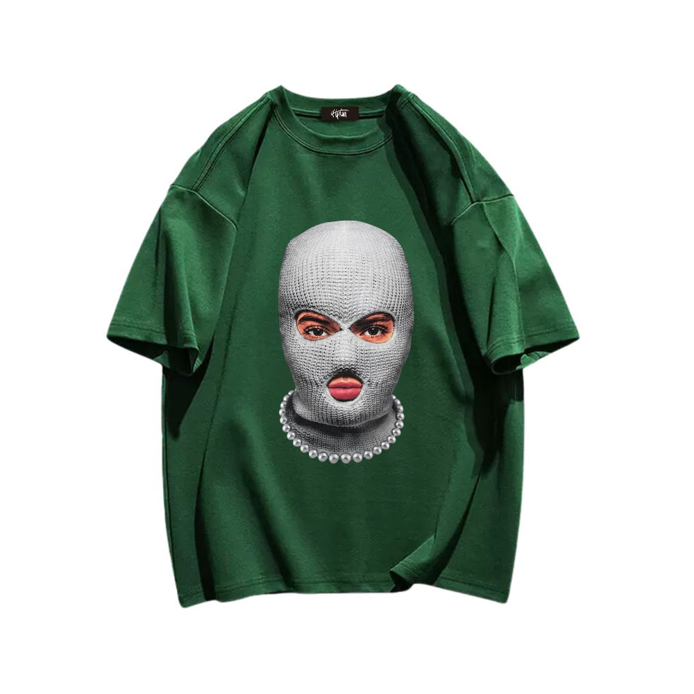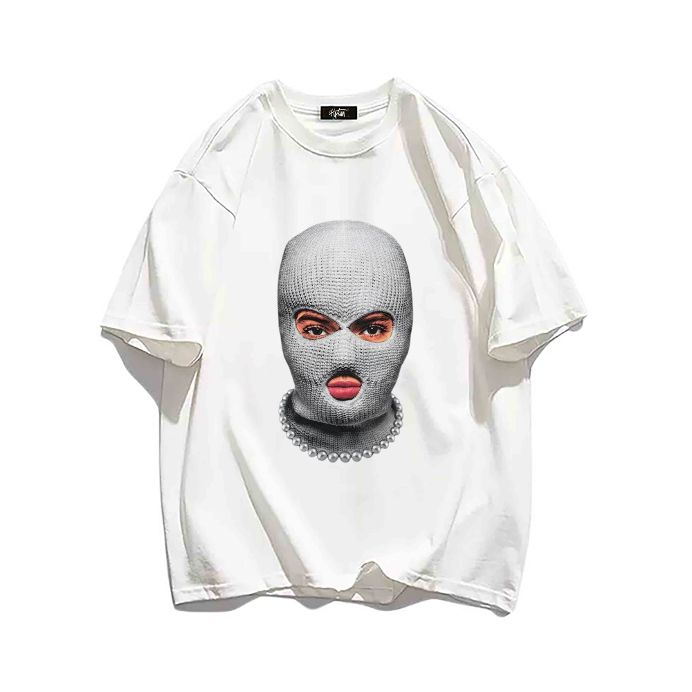 The bold and striking design features a white masked man silhouette against a black background, creating a sleek and modern look. The shirt is available in a range of sizes to ensure the perfect fit for every body type.