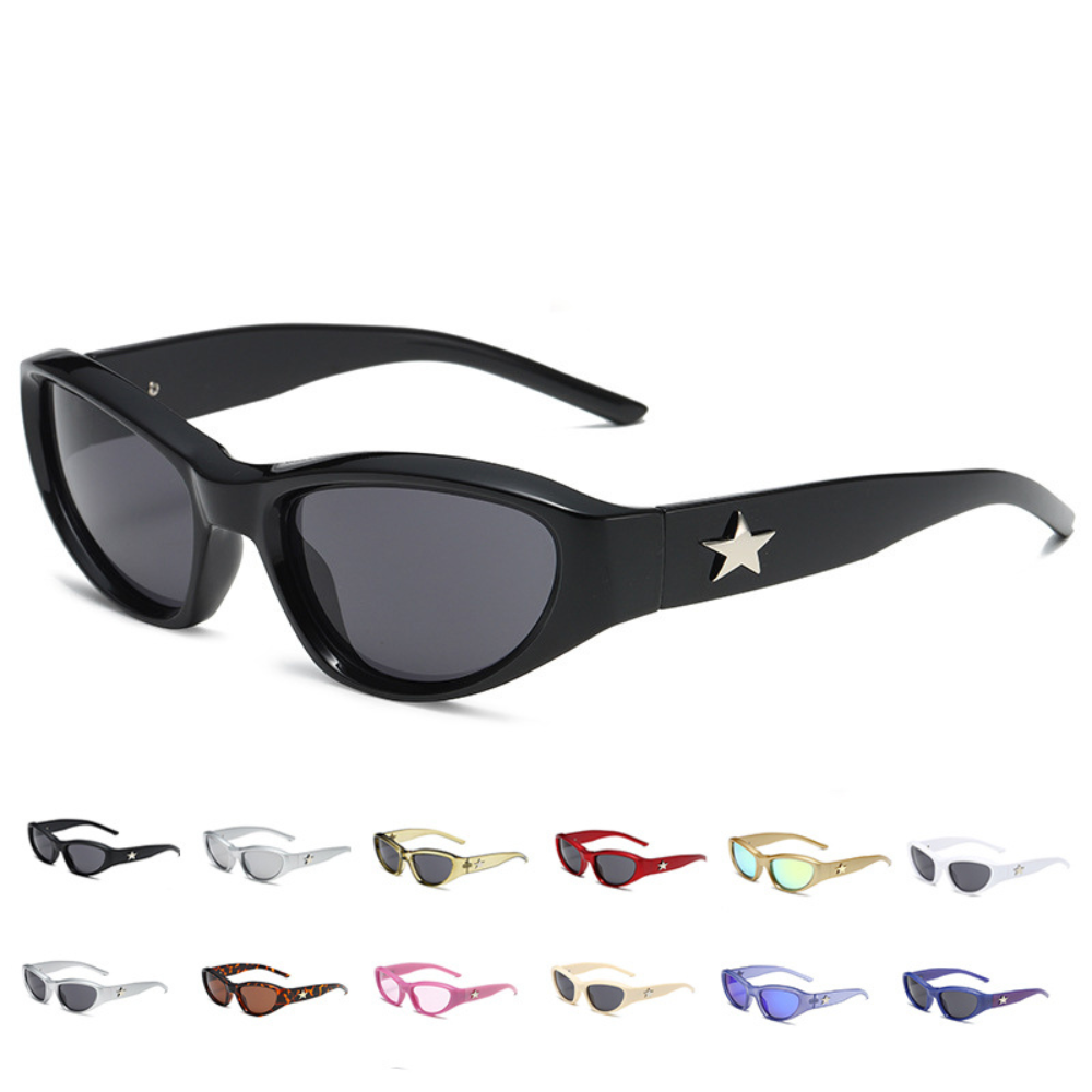 "Y2K Trendy Multicolor Star Rivet Cat Eye"Glasses